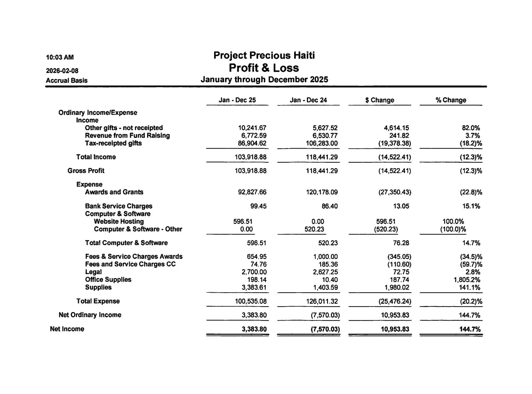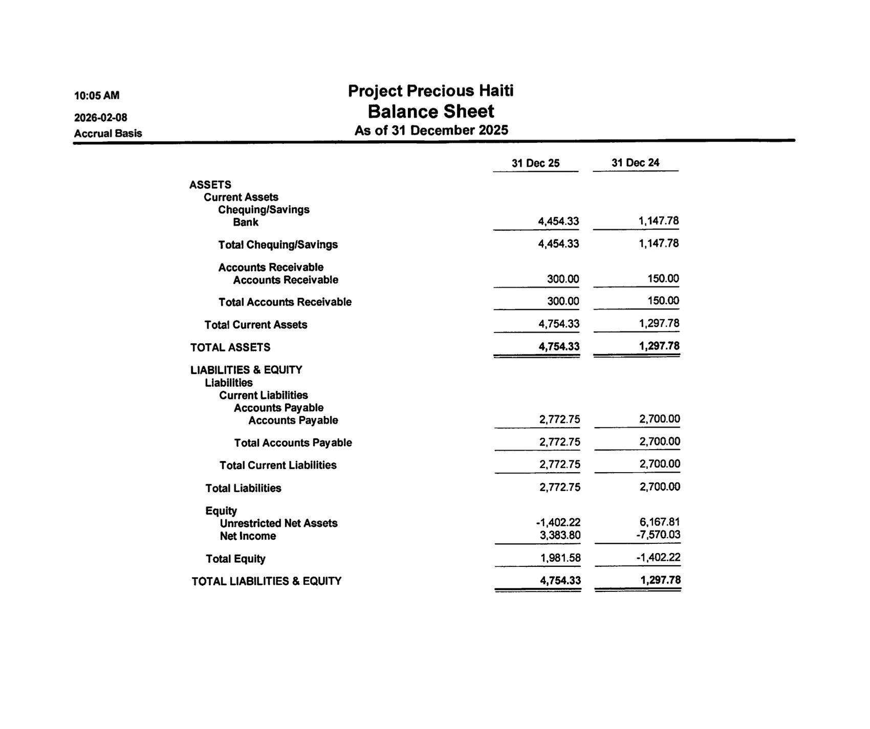 Financial Report for Year 2025